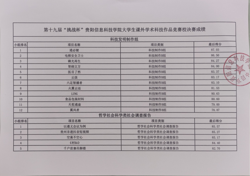 经过激烈角逐,各项目凭借扎实的技术积累和清晰的研究路径分别斩获各个赛道的奖项。其中,《通必键》项目荣获科技发明制作赛道第一名;《红色旅游目的地休憩价值评价与质量研究--以遵义会议为例》项目荣获哲学社会科学类社会调查报告赛道第一名;《药食同源》项目荣获自然科学类学术论文赛道一等奖。其他获奖项目详见下方名单: