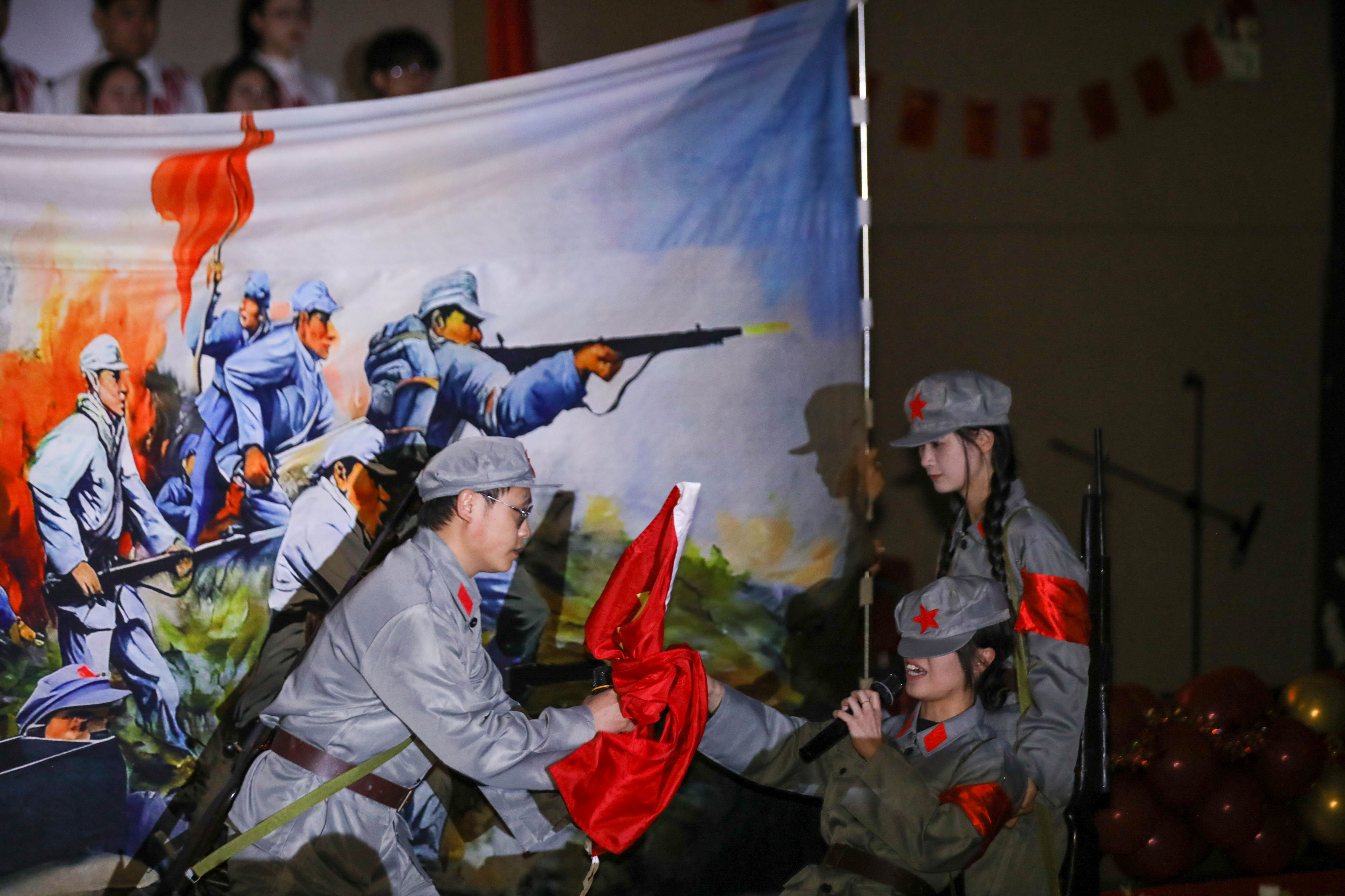 舞台上,师生们全情投入,或激昂澎湃,或婉转深情的演唱,将红色经典与时代精神完美融合,既回溯了波澜壮阔的奋斗征程,又彰显了贵科学子不忘初心、砥砺前行的精神风貌。每一个音符都饱含着对祖国的热爱,每一句歌词都凝聚着奋进的力量,现场不时响起热烈的掌声与喝彩声。