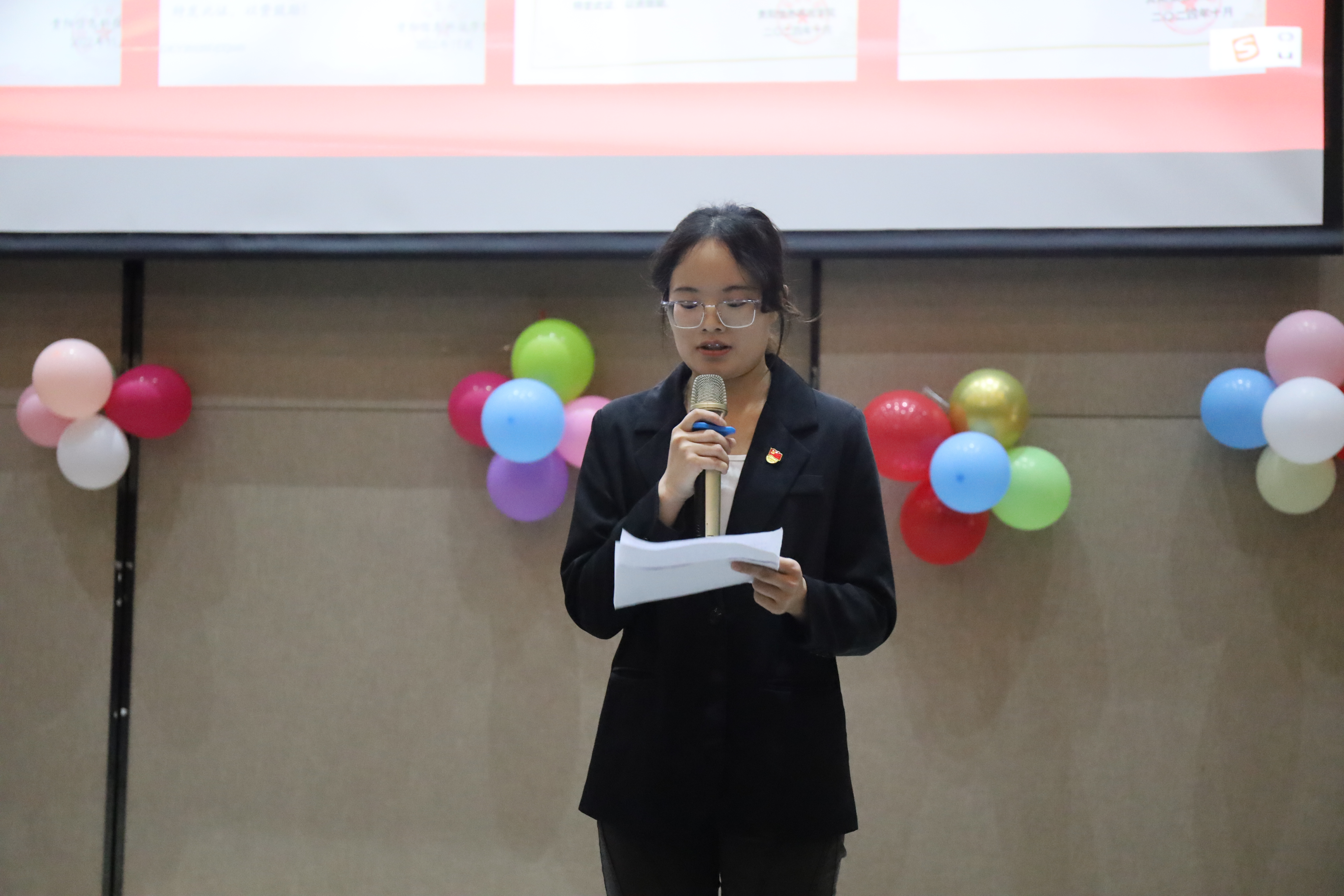 在分享环节,8名优秀毕业生党员结合自身经历分享奋斗故事。罗文飘以“信念与坚持”讲述学术研究和社会实践中的突破历程。杨锋从团队协作角度分享实习创业心得,强调党员身份促使自我提升。朱婷婷通过会计专业竞赛经历,阐释严谨态度的重要性。陈冲冲展示志愿服务与电商助农实践,体现青年党员社会担当。胡乐娟、肖玉佳等分别围绕初心坚守、志愿服务等主题,激励同学勇于追梦。