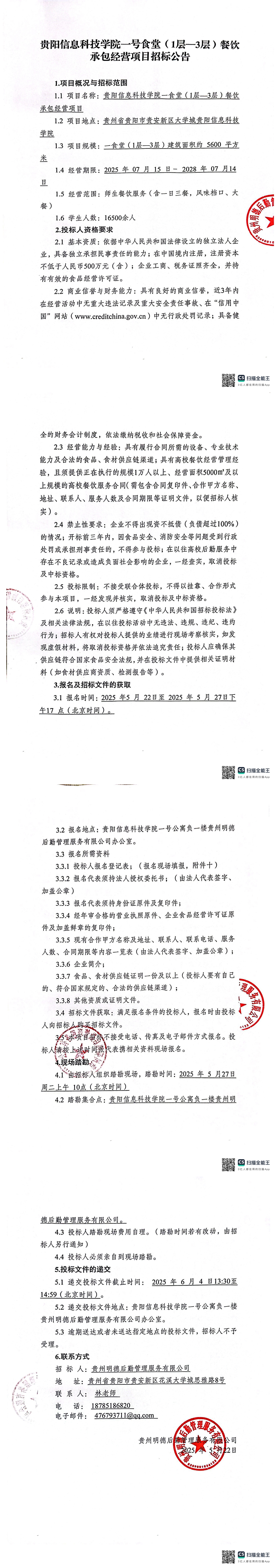 Beat365唯一官方网站一号食堂(1层-3层)餐饮承包经营项目招标公告