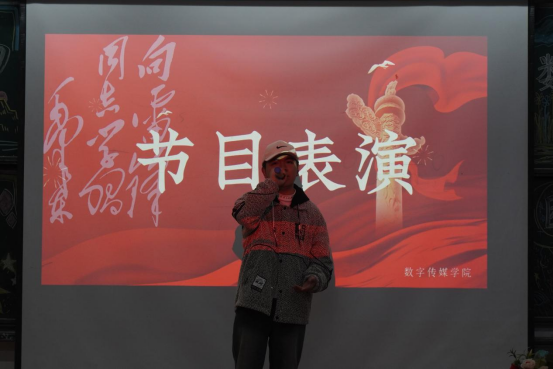 在等待评选结果期间,数字传媒学院学生会文体部带来《暗线》与《东北民谣》两首歌曲,展现出青春的美好活力与奉献精神的力量。