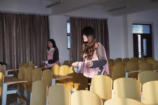 针对教室纸屑堆角、卡片遍地的情况,学生会成员化身“环境卫士”,进入传媒楼教室打扫卫生。对课桌缝隙、窗台边角堆积的驾校宣传卡片进行清除,同学们蹲身细查,用手将卡片捡起;对散落的饮料瓶、零食袋进行分类回收,通过同学们的悉心打扫、教室迎来了崭新的面貌。此次参与活动的同学们共收集300余张,同学们纷纷感慨道:焕然一新的教室真是令人耳目一新!