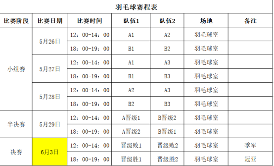 (图4为羽毛球赛事安排表)