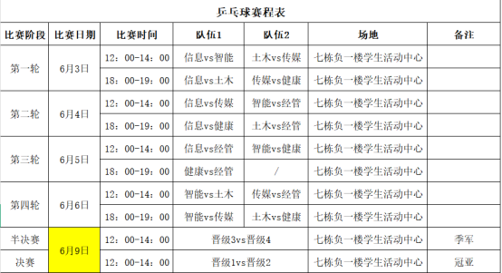 (图6为乒乓球赛程安排表)