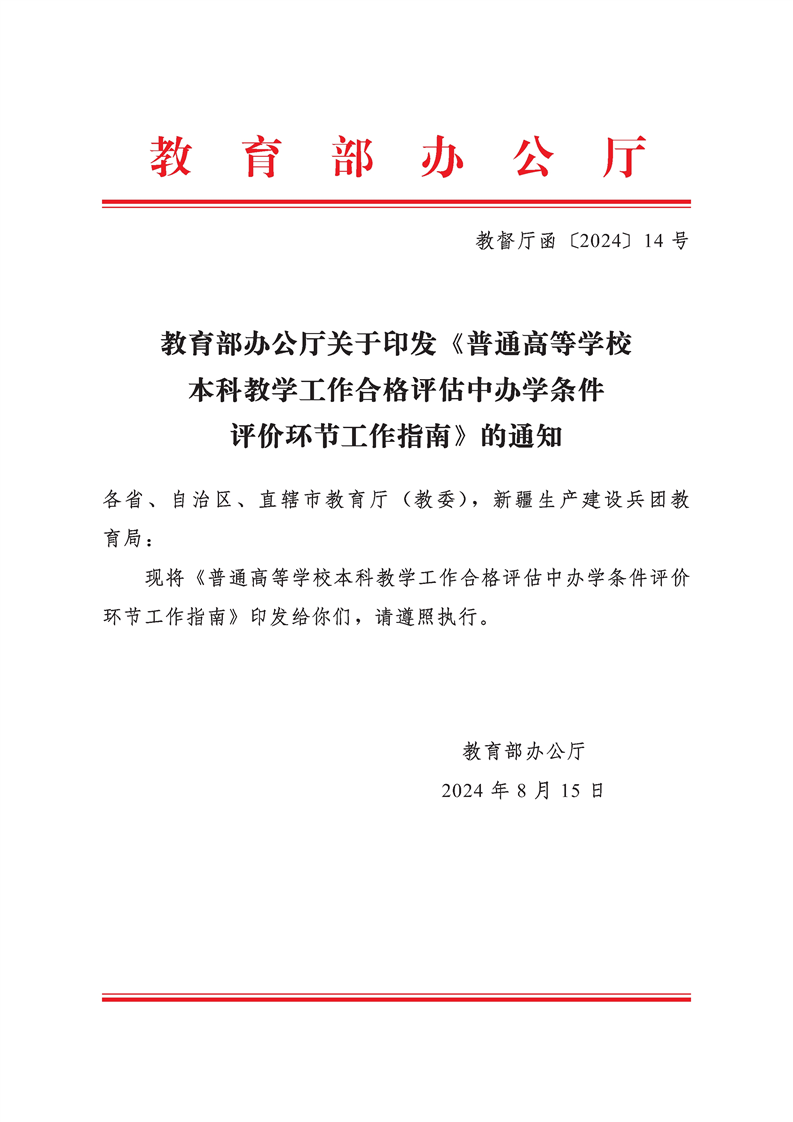 教育部办公厅关于印发《普通高等学校本科教学工作合格评估中办学条件评价环节工作指南》的通知