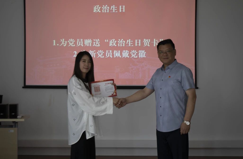 组织一次政治生日。此次活动精心设计政治生日环节,向近期过政治生日的8名党员颁发统一制作的政治生日贺卡,并为2名新党员佩戴党员徽章。通过这些仪式唤起党员入党初心,激发政治热情,强化党员政治荣誉感、使命感,进一步提升党员的政治意识、责任意识、担当意识。