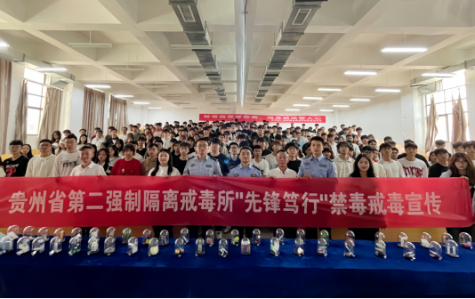 讲座伊始,贵州第二强制隔离戒毒所李飞华警官通过真实案例分析及防范视频展示,深入浅出地向同学们讲解了毒品的定义、分类、危害以及当前禁毒工作面临的严峻形势。针对防范意识薄弱的青少年群体,他特别强调近年来毒品犯罪呈现“网络化”“隐蔽化”特征,部分新型毒品伪装成“邮票贴纸”“功能饮料”甚至“电子烟油”,通过社交平台向青年群体渗透。并结合毒品模型和吸毒视频的展示,提醒同学们要时刻保持警惕,切勿因好奇或轻信他人而误入歧途,应当树立正确的人生观、价值观,提高自我保护意识,坚决远离毒品。