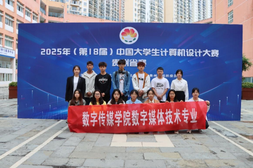 2025 年 5 月 17 日,备受瞩目的 2025 年(第 18 届)中国大学生计算机设计大赛贵州省省总决赛在贵州师范学院盛大启幕。此次大赛由中国大学生计算机设计大赛组织委员会主办,吸引了全省众多高校学子同台竞技,竞争十分激烈。在校团委统筹规划与数字传媒学院的高效推进下,由吴丹丹、谭琼两位老师带队,数字媒体技术专业的贾维菁、向昌换、赵越、张忠艳、骆凯默等 14 名学子组建的 7 支参赛队伍,凭借扎实的专业功底与创新思维,在激烈的竞赛角逐中脱颖而出,成功晋级省级决赛。