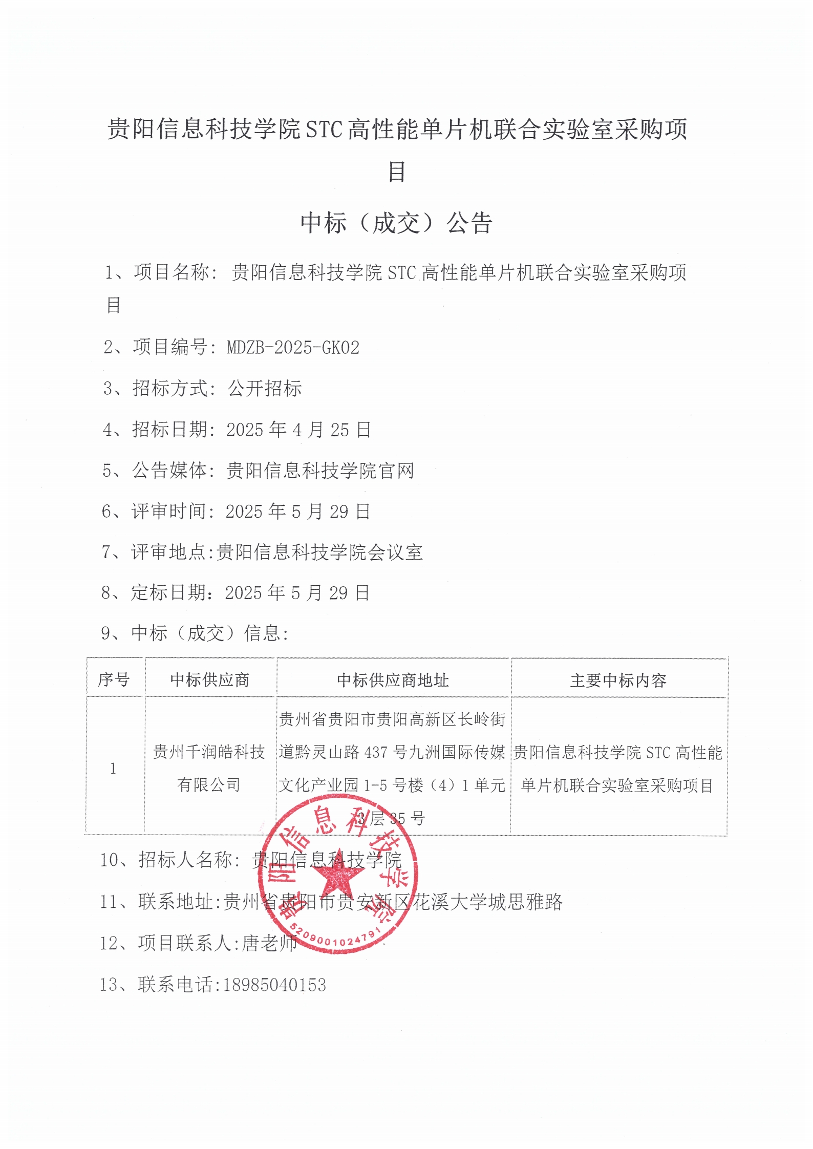 Beat365唯一官方网站STC高性能单片机联合实验室采购项目中标(成交)公告