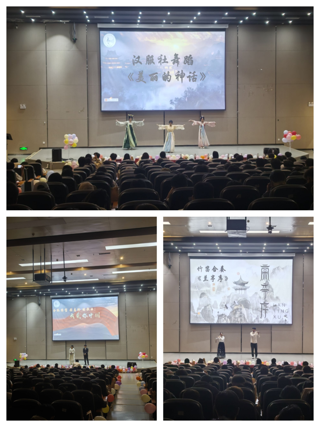 随后,协会成员带来了丰富多彩的表演。罗梦兰同学的歌曲《大山》深情动人,孔炜彬同学的洞箫独奏《飞雪玉花》空灵悠远,学员们的教学成果展示《半壶纱》则展现了从入门到熟练的成长历程。此外,葫芦丝演奏《繁花》、歌舞《探窗》、汉服社舞蹈《美丽的神话》以及竹笛合奏《兰亭序》等节目,为观众带来了一场视听盛宴。活动中还穿插了击鼓传花游戏环节,让观众在互动中了解中国传统乐器的知识。