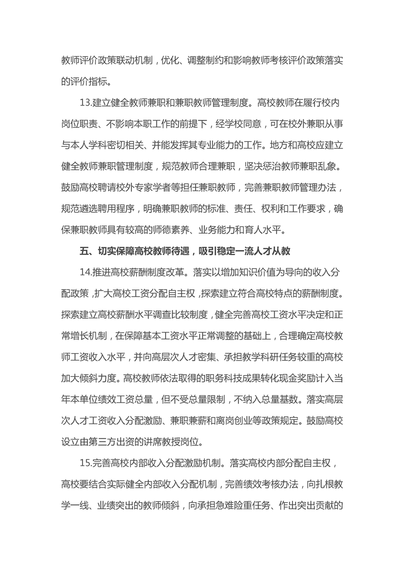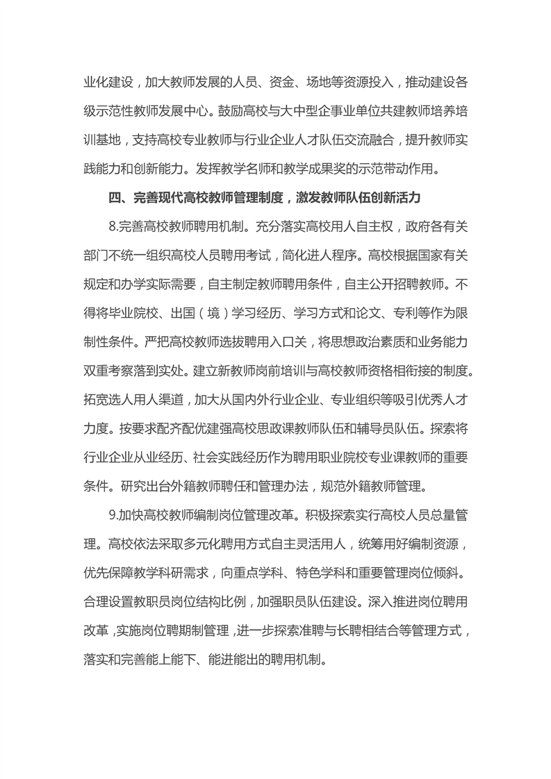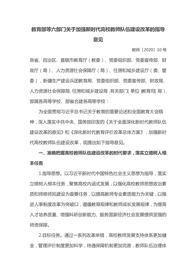 关于加强新时代高校教师队伍建设改革的指导意见