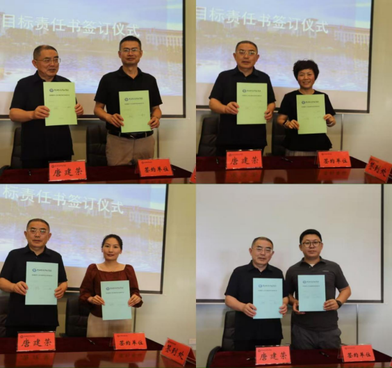 校领导与职能部门、二级学院代表现场签署评估任务责任书。
