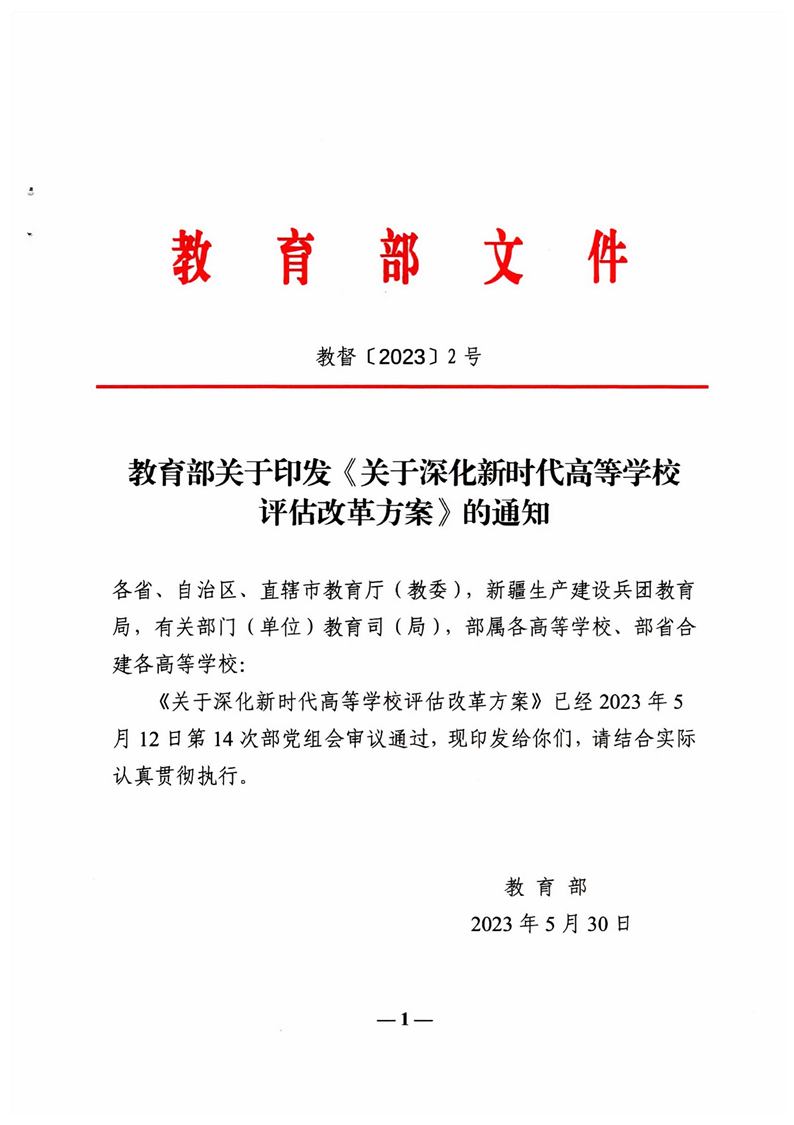 教育部关于印发《关于深化新时代高等学校评估改革方案》的通知