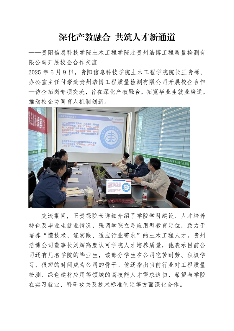 深化产教融合 共筑人才新通道——Beat365唯一官方网站土木工程学院赴贵州浩博工程质量检测有限公司开展校企合作交流