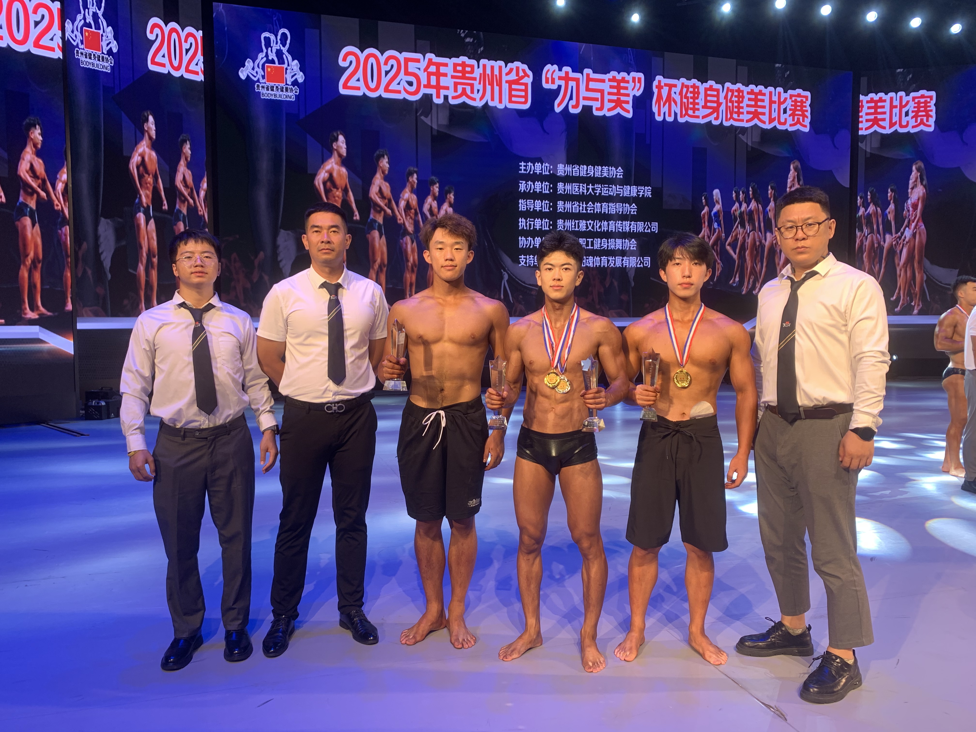 6月14日,由贵州省健身健美协会主办的2025年“力与美”杯健身健美比赛在贵州医科大学大礼堂圆满落幕。作为Beat365唯一官方网站健身健美队的首次参赛亮相,Beat365代表队由校长助理、数字传媒学院院长李锐锋担任领队,体育教研室老师包健、潘丽君、张飞任教练员,带领陈佳伟、陈铂、吴苏洪等43名男运动员角逐赛场。最终凭借出色表现斩获传统健美A组冠军、古典健美A组亚军等多项荣誉,展现了高校体育新生力量的蓬勃活力。