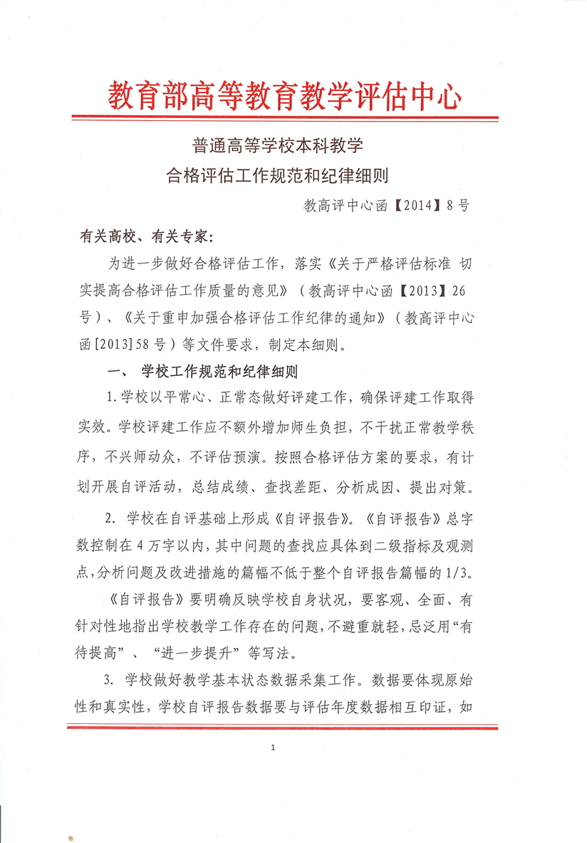普通高等学校本科教学合格评估工作规范和纪律细则