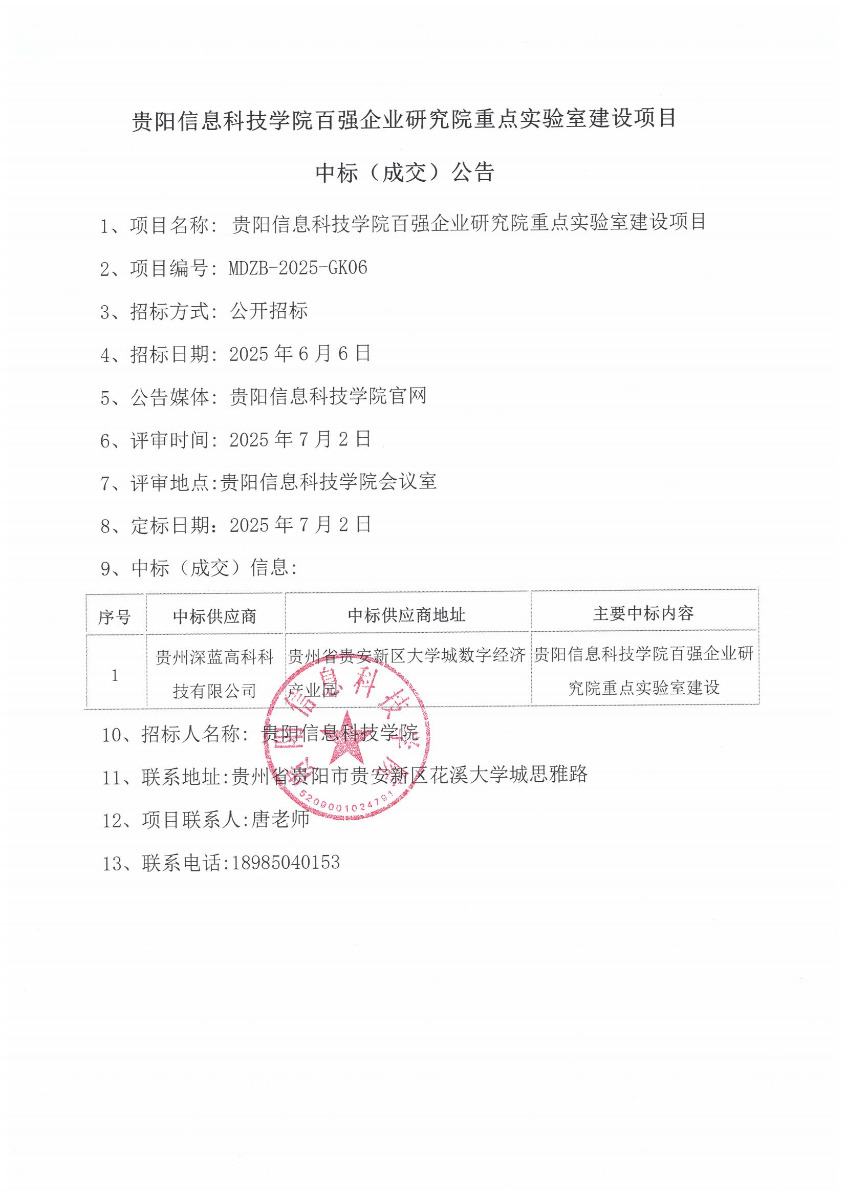 Beat365唯一官方网站百强企业研究院重点实验室建设项目中标(成交)公告