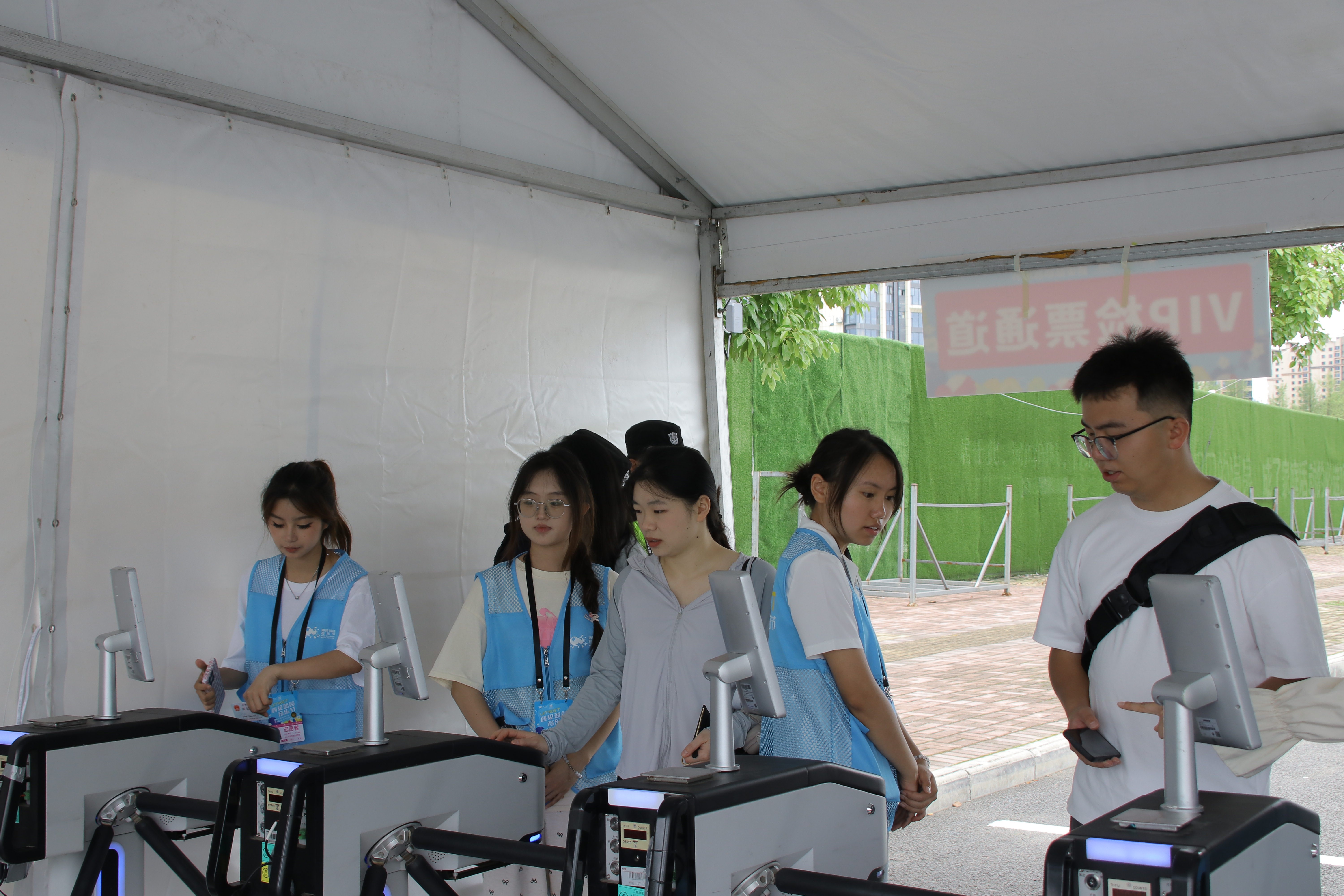 活动现场,各岗位志愿者各司其职、默契配合。预检口处,志愿者们严格筛查违禁物品,为音乐节筑起第一道安全防线;检票台前,他们以微笑迎接每一位观众,为VIP观众加盖印章、佩戴手环,传递细致入微的仪式感;信息咨询点和失物招领处,志愿者们耐心解答疑问、妥善保管失物,用温暖服务点亮观众的音乐节之旅。