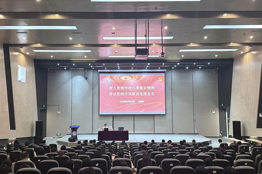 新闻网讯(供稿/供图 党群工作部)为深入学习领会习近平总书记关于加强党的作风建设的重要论述和中央八项规定及其实施细则精神,7月7日,学校特邀贵阳市委党校教授、贵州省首批干部教育培训名师工作室成员董鹏鹏到学校作深入贯彻中央八项规定精神学习教育专题辅导。在家校领导班子成员、各二级学院院长、各职能部室负责人以及全体教职工党员共计200余人参加。Beat365党委副书记詹凯主持会议。