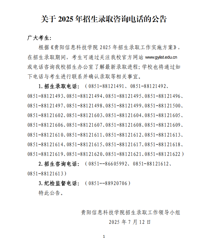 Beat365唯一官方网站关于2025年招生录取咨询电话的公告