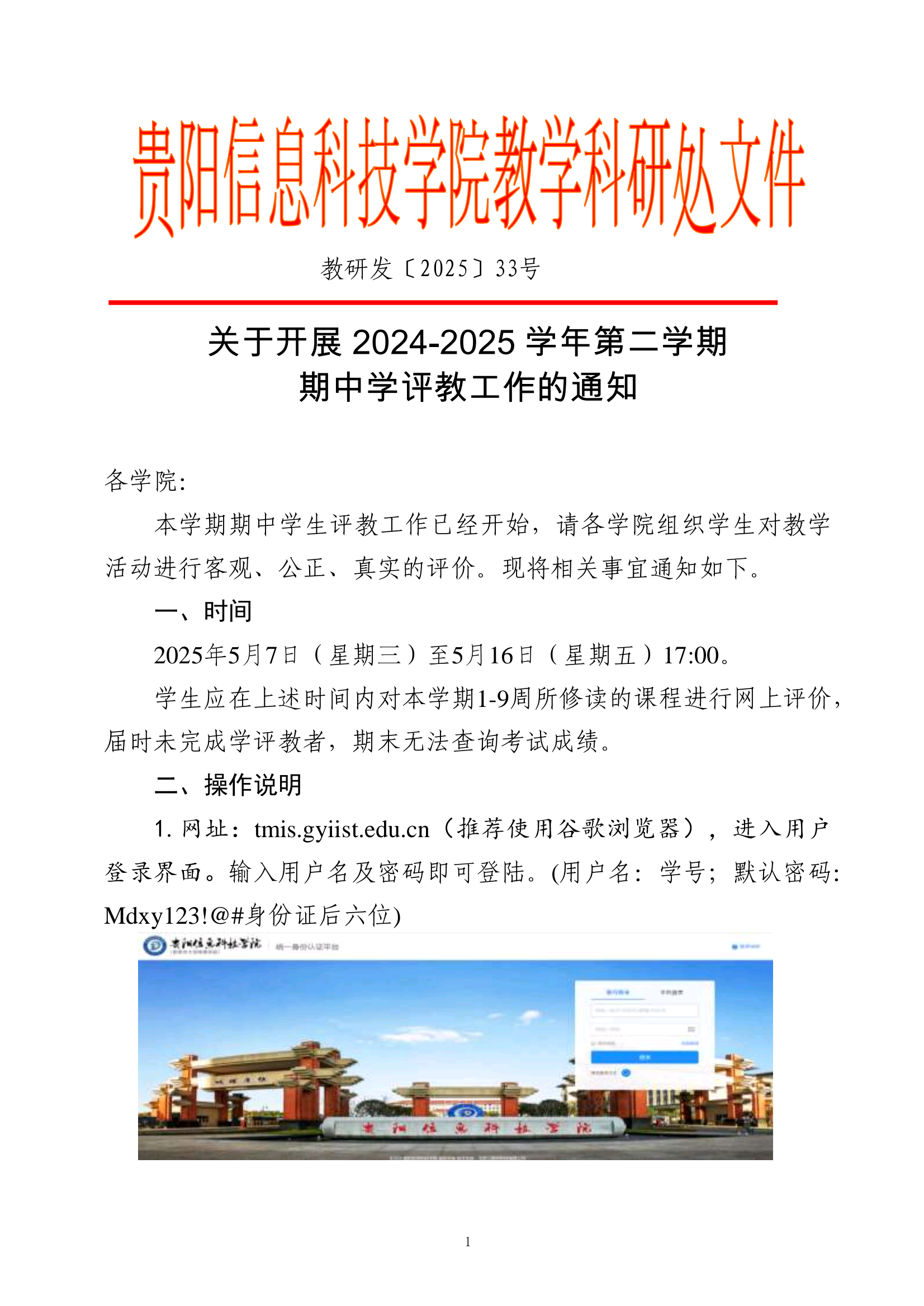 关于开展2024-2025学年第二学期期中学评教工作的通知