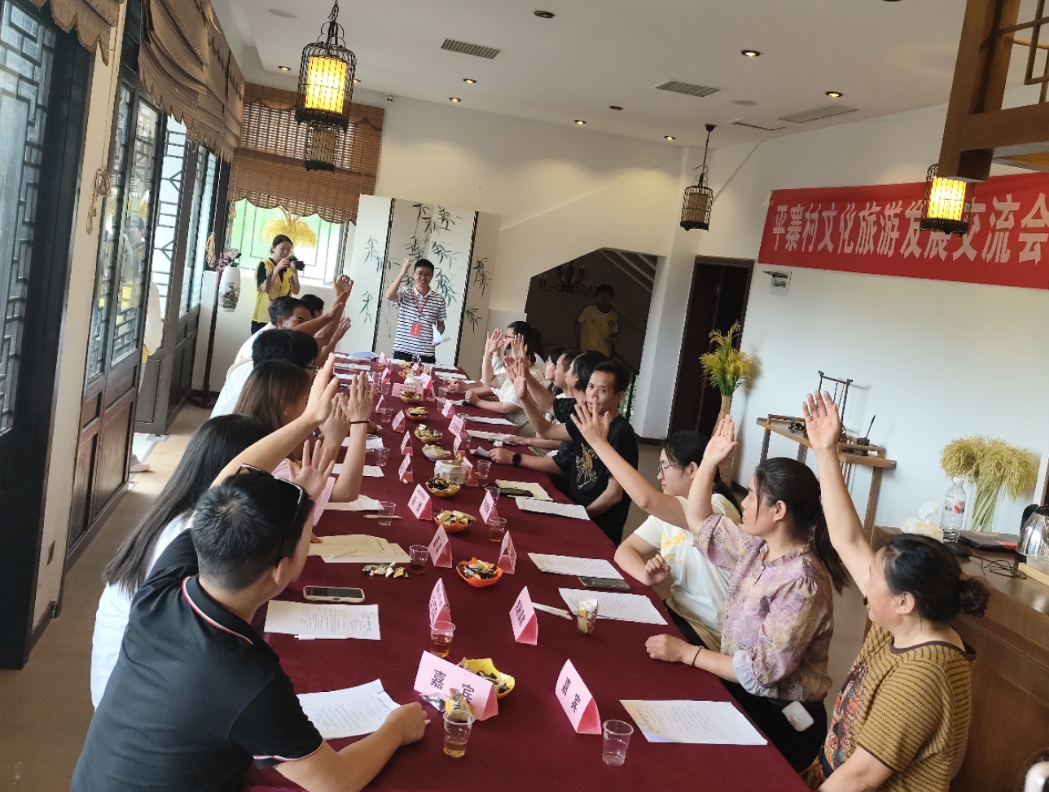 7月10日,在村古老民族文化艺术馆由实践队发起的《平寨村文化旅游发展交流会》邀请了村主任王河、布依族文化专家陈锡林、六月六风情街企业家、民宿业主、村大学生代表及旅游管理专业教师蔡朝笛等近30人齐聚一堂。经过两个多小时热烈讨论,碰撞出丰硕成果:《平寨村文化旅游发展合作倡议书》现场签署;“北斗七寨文化旅游发展协会”(筹委会)宣告成立并选举筹备委员会成员;四大创新计划启动:“文旅代言人计划”“全民自媒体计划”“校企合作计划”“周末常态化赶集计划”,全方位激活文旅生态。