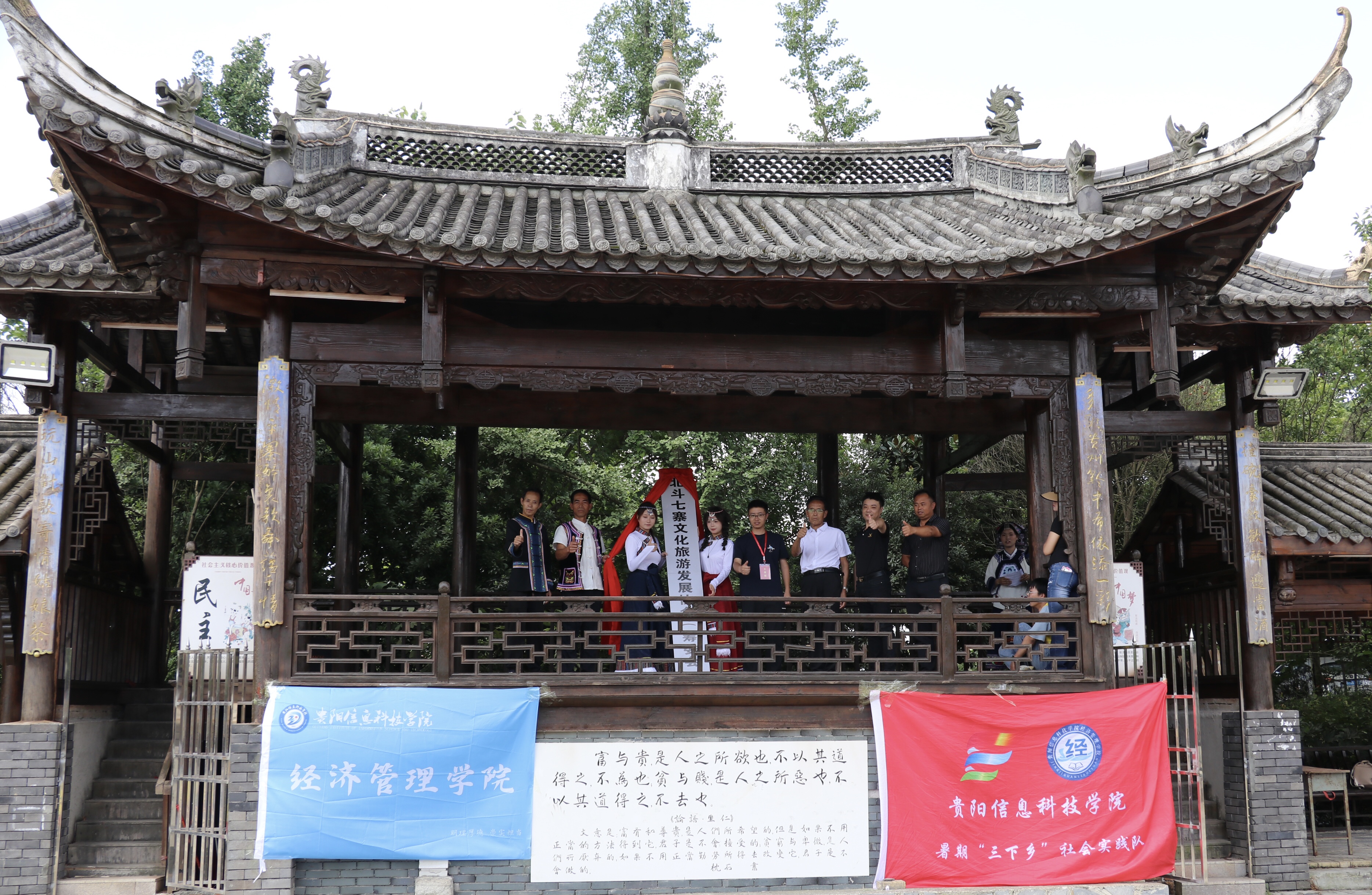 7月12日,平寨村委会广场“北斗七寨文化旅游发展协会”揭牌暨“文旅代言人”聘书颁发仪式在此举行。村民、企业家、游客热情高涨。贵阳信息科技学院学子与村民联袂献上布依歌舞,欢庆协会诞生。仪式高潮,全场齐声高唱《我在贵州等你》,以真挚歌声向四海宾朋发出避暑之约。