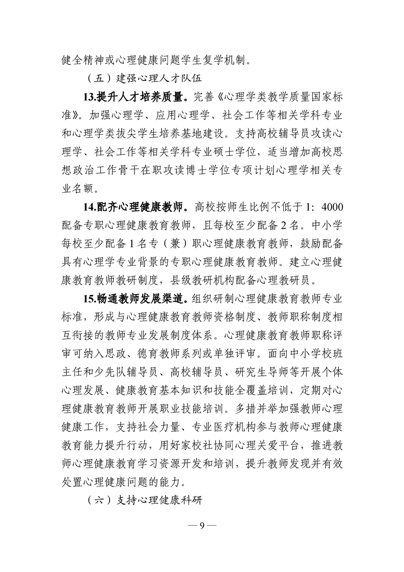教育部十七部门关于心理健康工作的通知