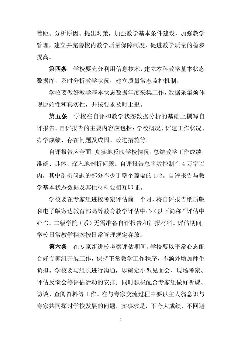 普通高等学校本科教学合格评估学校工作规范(试行)