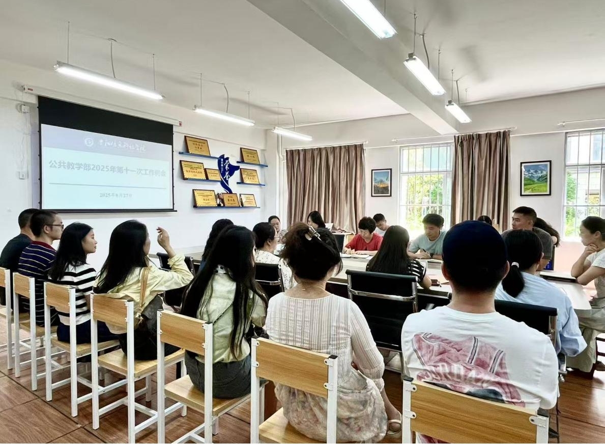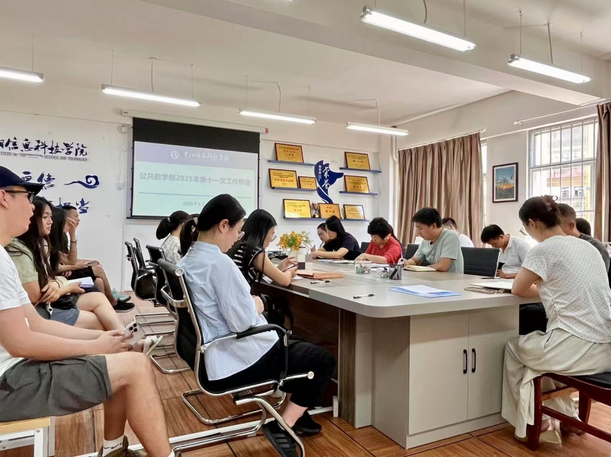 2025年8月27日13时,贵州信息科技学院公共教学部在A211会议室召开第十一次工作例会,会议由唐丽华部长主持,公共教学部全体教师参会。