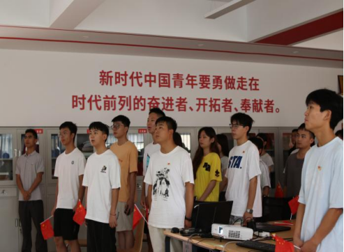 活动在高亢的国歌声中拉开帷幕。当直播画面呈现天安门广场升旗仪式时,现场师生全体起立,齐声高唱国歌。嘹亮的歌声在党建室内久久回荡,饱含着对革命先烈的崇高敬意。