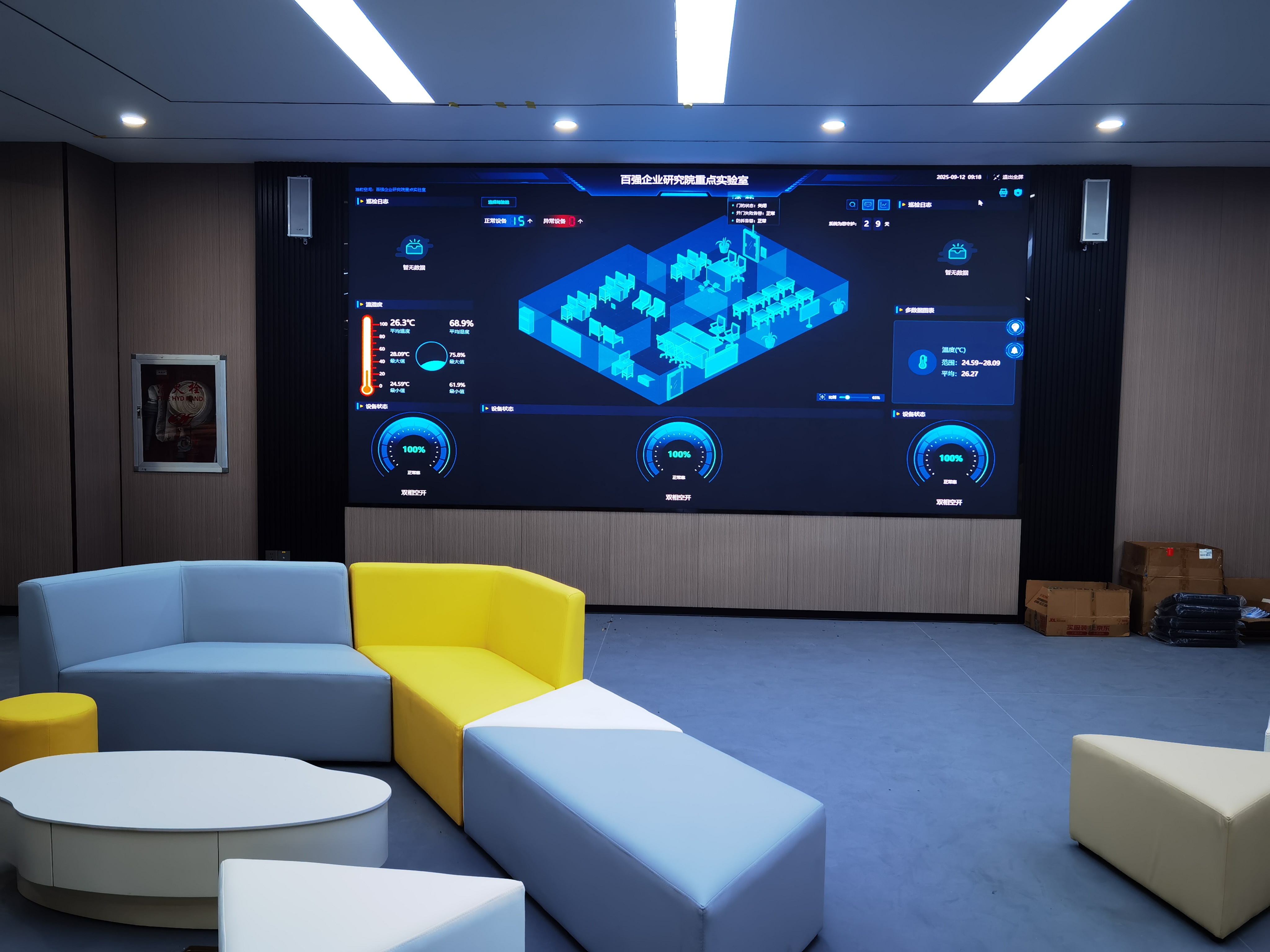 2、超高清LED展示系统,实现研究成果与企业数据的可视化沉浸体验;
