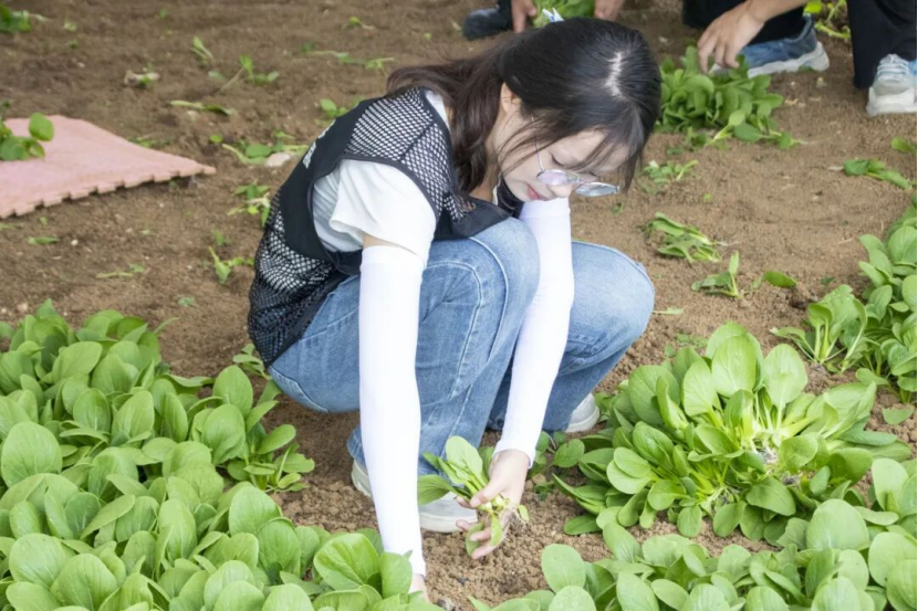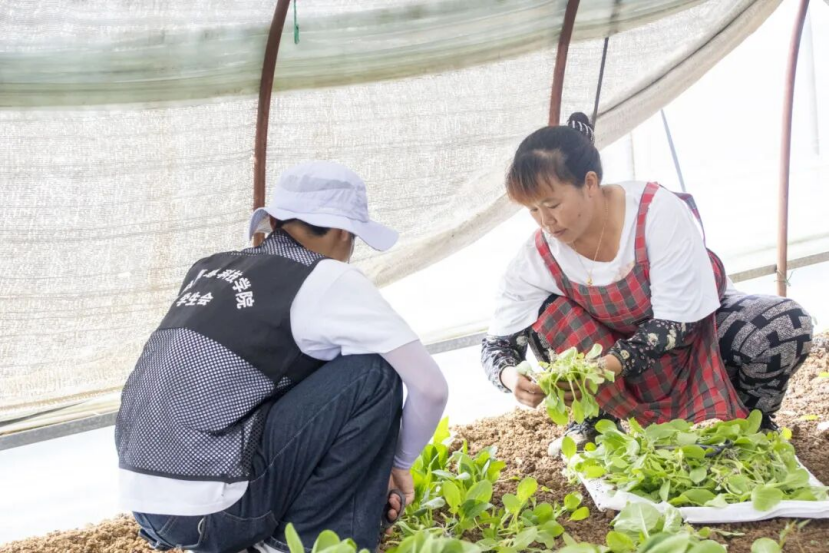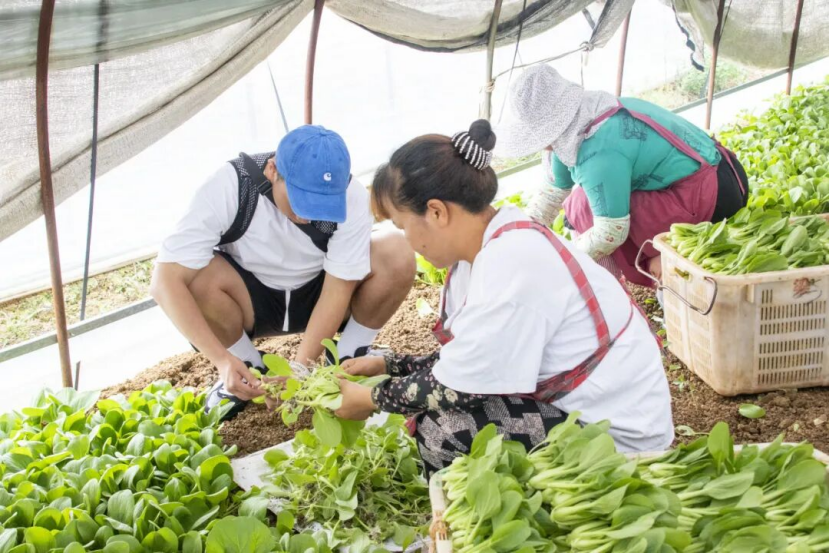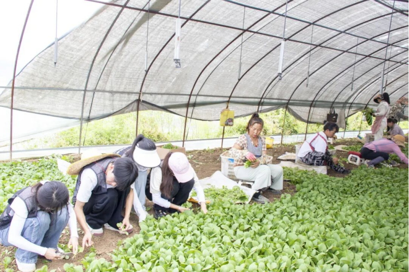 参观结束后,实践团队成员们迅速投入到助农劳动中,帮助农民收割蔬菜上海青。大家分工协作,干劲十足,切实体验了农事劳作的辛劳,也用实际行动减轻了农户的负担。