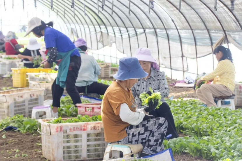 “基地蔬菜每天需要30到40名村民来采摘,大多是村里的中老年人,一天也能挣不少钱,让他们在家门口就能增收,补贴点家用。”负责人指着大棚里的辛勤劳动的村民道。