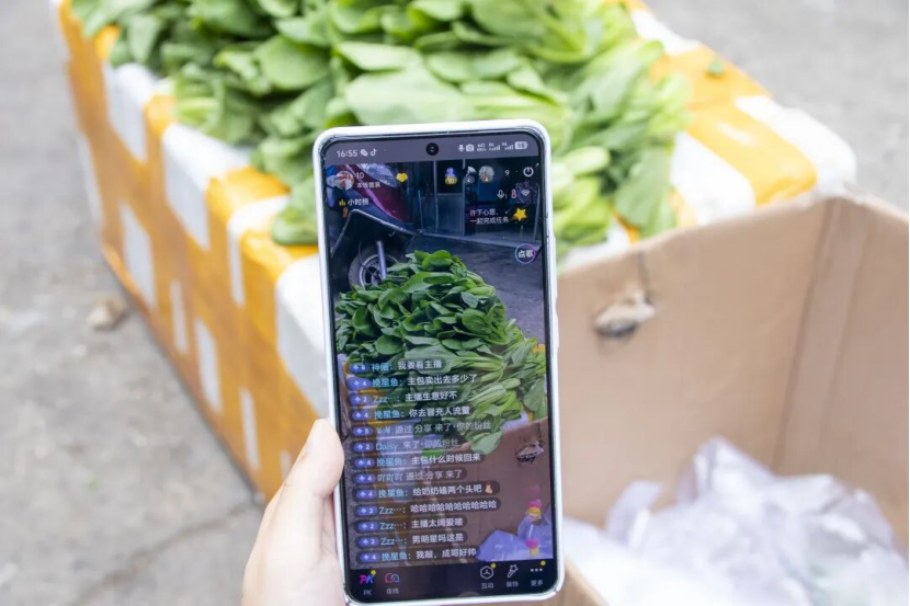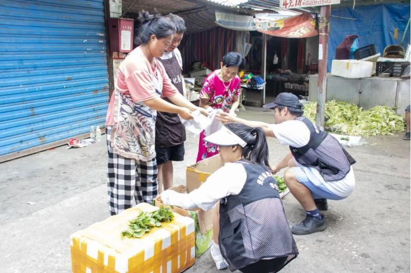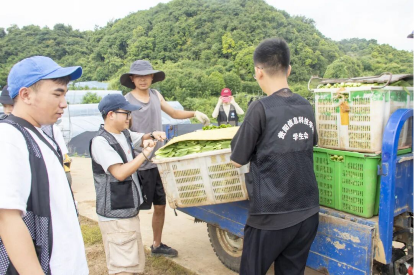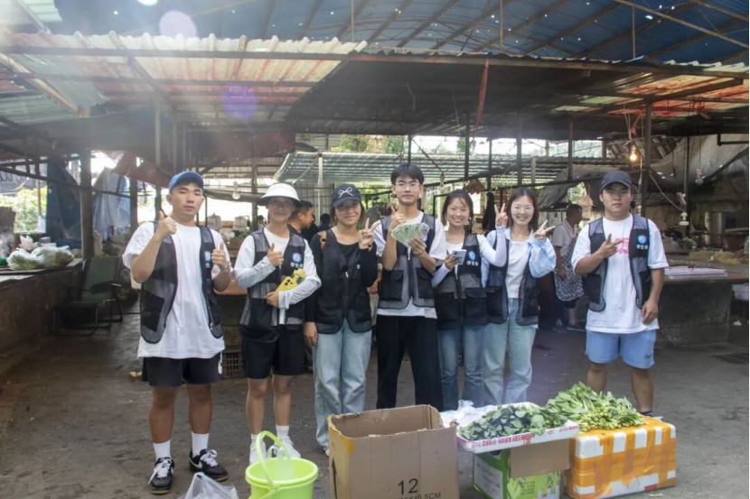 劳动结束后,队员们挑选部分品相良好的上海青带去集市进行试点售卖,并在现场以直播的形式宣传该基地的大棚蔬菜,增强知名度,提升传播效能。售卖活动不仅为合作社带来了一定的收益,还激发了同学们助农的热情。