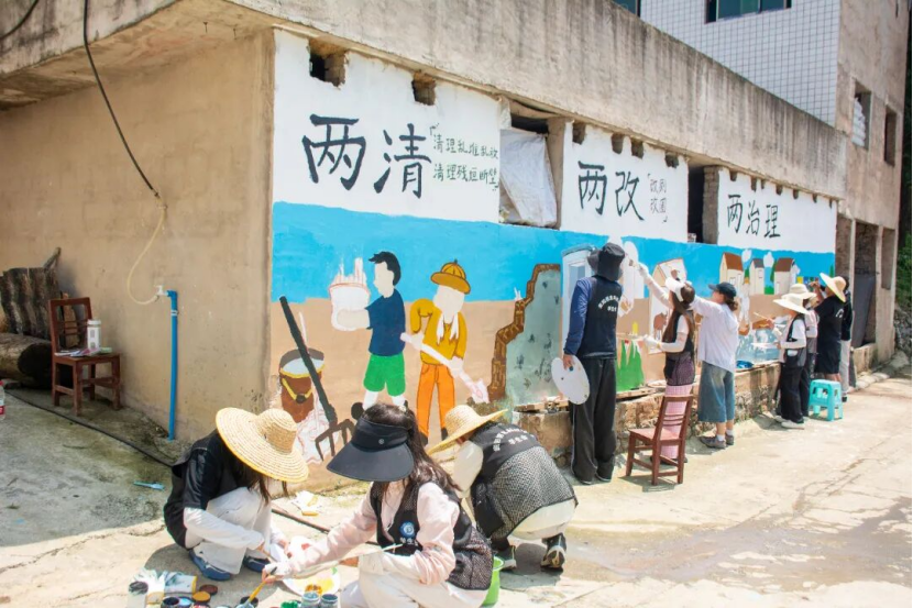 此外,当天还开展了墙绘、助农活动。助农活动中,杉树村一队队员与村民并肩劳作,共同栽种芹菜。田间地头的协作里,青春汗水融入泥土,以实际行动为乡村振兴添力。