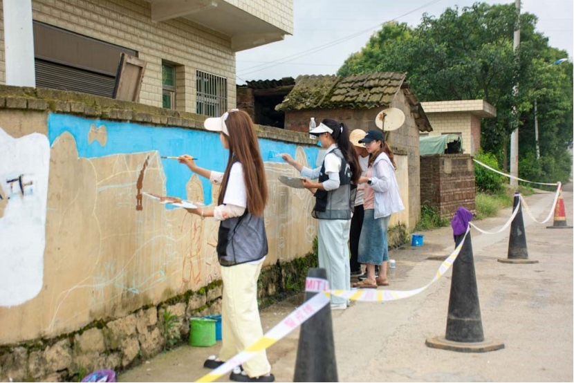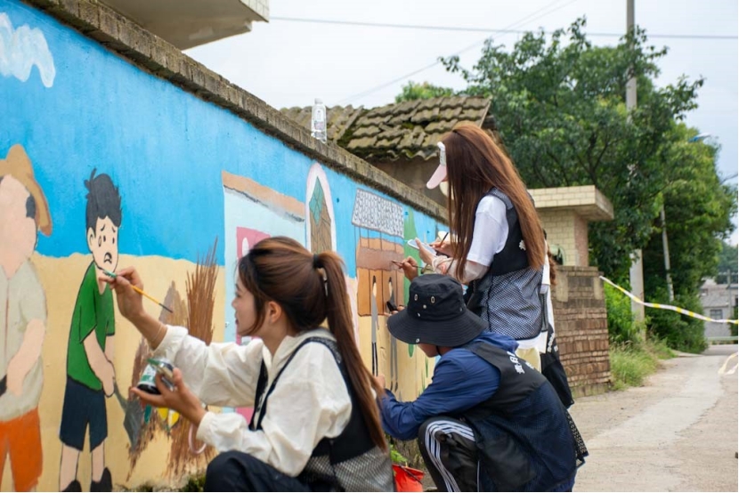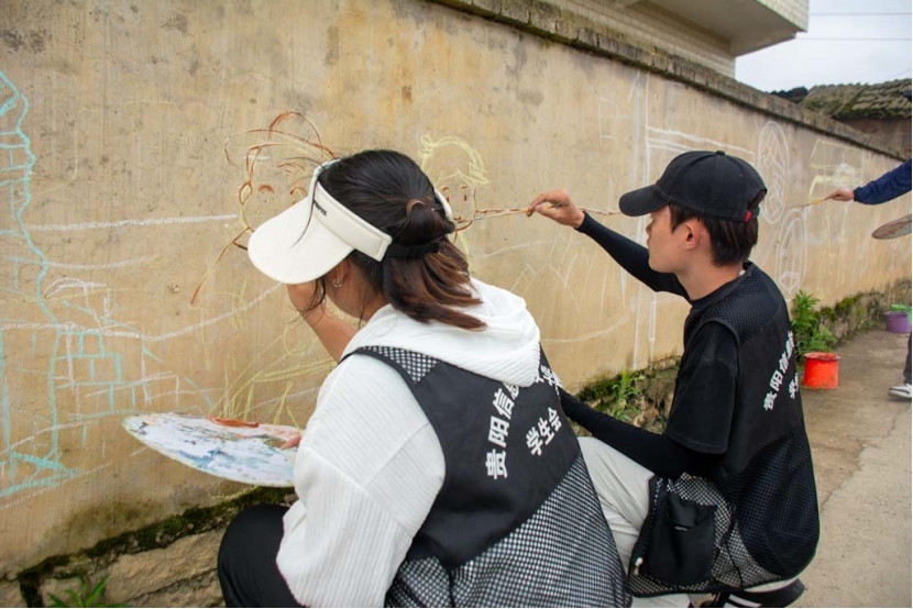 此外,实践队当天还分别在农源村和杉树村开展了墙绘和助农活动。