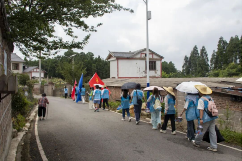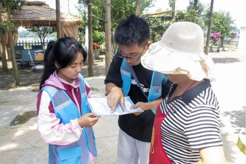 在发放宣传单过程中,一位农户对宣传内容高度赞同,他接过宣传单仔细看完,连连点头:“你们说的我都懂了!这垃圾乱扔确实不行,堆着臭得很,流到湖里更糟。我这就把这单子贴到村口电线杆上,让过路的都瞧瞧,大家一起别再乱甩了!”朴实的话语里,藏着对家乡环境最真切的爱护,也让队员们深切感受到,当宣传真正触达人心,便能唤醒更多人主动参与的热情。