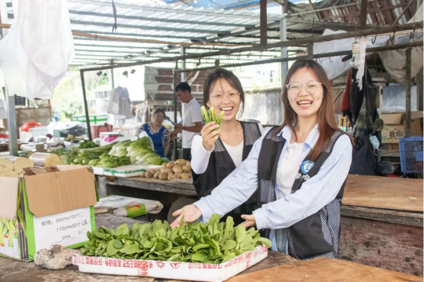 图13 图为实践队助农小队在集市试点售卖上海青 冯若涵 供图