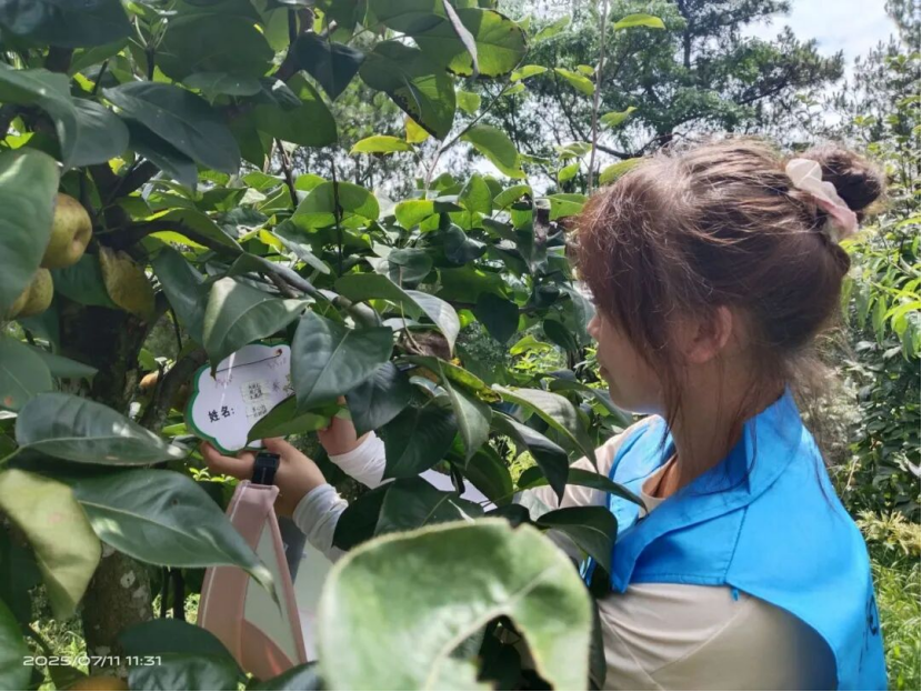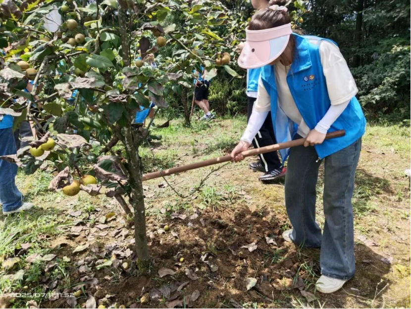 清晨,队员们前往绥阳县小关乡金银花种植基地开展实践活动。基地负责人变身“乡村产业讲解员”,唠起金银花的“超能力”——能当药用、能帮村民增收,还能优化生态环境,并讲解着产业正从“靠政策扶一把”起步,朝着树立品牌、优化品种、提升品质的方向闯进市场的探索之路。队员们秒变“好奇宝宝”,边听边问,认真记录乡村产业振兴“知识点”。随后,队伍来到“我的果园”实践基地进行简单的除草劳动,并体验了果实采摘。活动结束后,基地负责人热情邀请队员们今后再来交流学习。