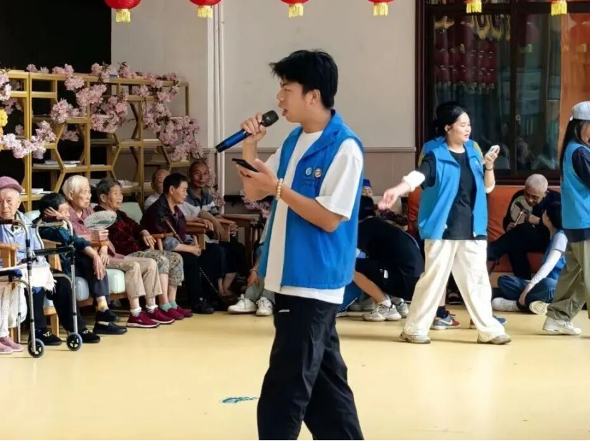 午后,队员们赶往“绥阳县颐康养中心”,一场温馨欢乐的“青春与夕阳”之约就此展开。队员们围坐在老人身边,陪他们唠家常,听他们讲述过去的故事。更精彩的是队员们精心准备的小节目。有一位活力满满的奶奶,直接加入唱跳的队伍,瞬间点燃了全场气氛。快乐的时光总是过得飞快,到了告别的时刻,老人们紧紧拉着队员们的手,队员们也舍不得松开,这场温暖的相遇,在每个人心中都留下了深深的印记。