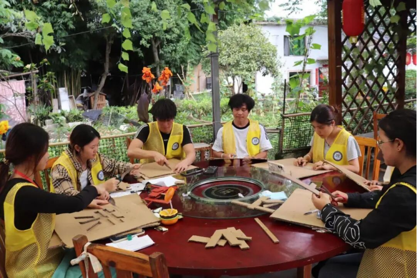 “艺绘乡村”实践队的队员们在指导老师颜欣的带领下,穿梭在村寨的街巷、田野之间,细心捕捉铜鼓纹饰、传统图腾、特色服饰细节、古朴民族建筑及村民耕作劳作场景和生活场景。这些饱含生活气息与民族特色的元素被镜头一一记录,为后续墙绘创作注入最真实、富有生命力的灵感。