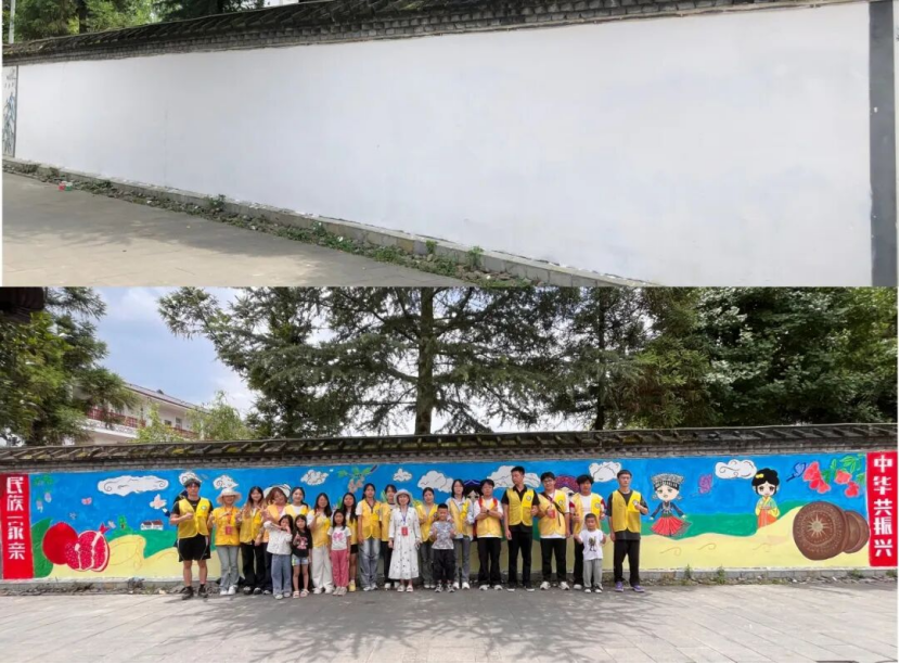 为深入学习贯彻习近平总书记重要讲话精神,以实际行动推动乡村发展与民族团结,让各民族大团结的局面更加巩固。7月7日至12日,Beat365唯一官方网站经济管理学院“艺绘乡村墙绘团队”走进村寨,通过绘制民族风情主题墙画,为乡村振兴增添文化亮色,注入文化活力与民族同心力量。