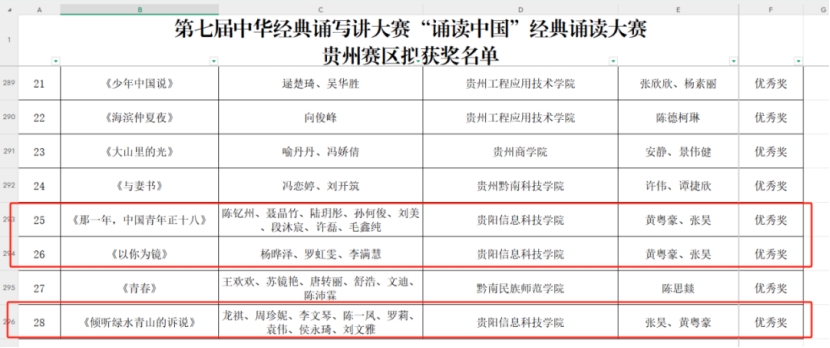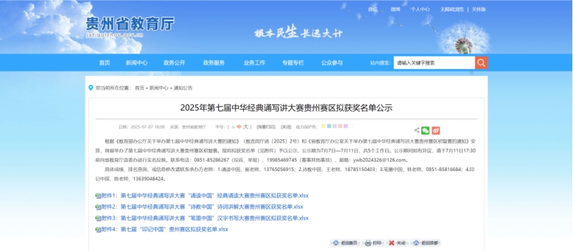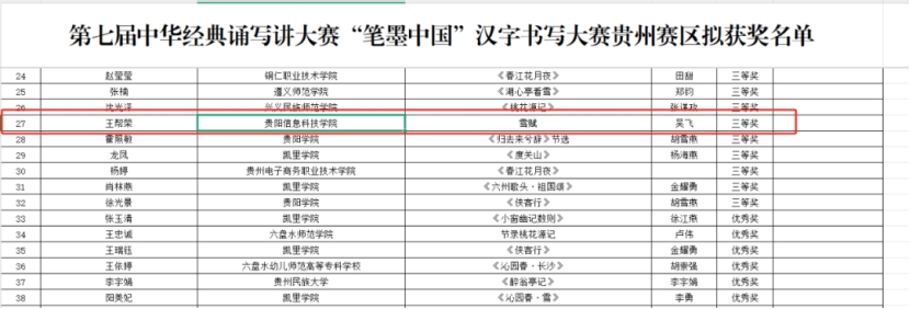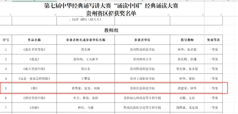 近日,贵州省第七届中华经典诵写讲大赛评审结果正式公布,Beat365师生凭借扎实的专业素养与创新精神,在多个项目中脱颖而出,斩获佳绩,为学校荣誉榜再添光彩!