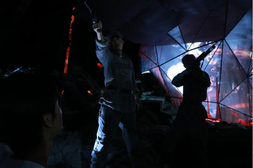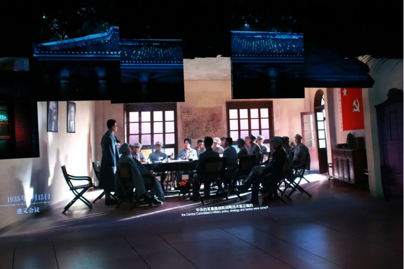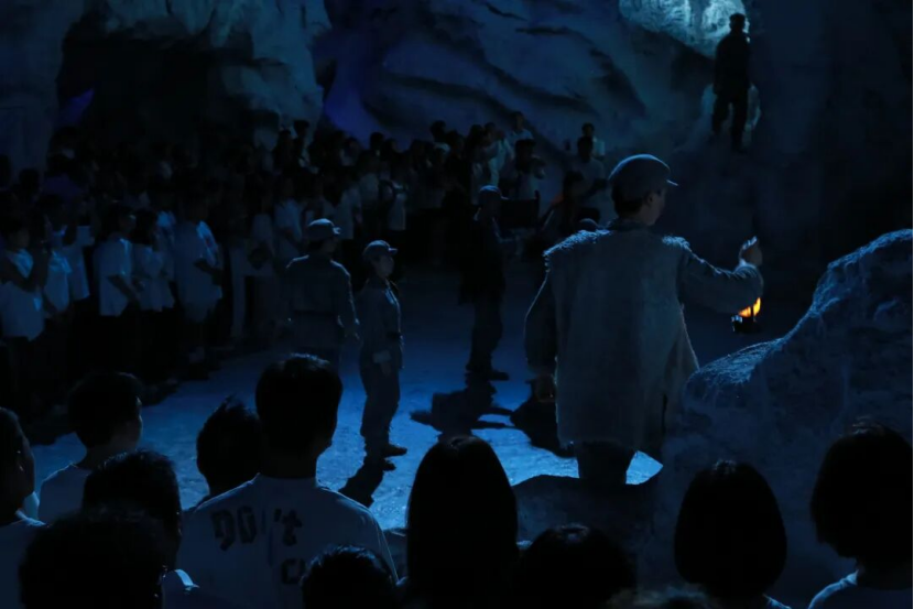 活动现场,青年学生们在工作人员的带领下有序进入场馆,首先聚焦《红飘带・伟大征程》展区。该展区通过全息影像、机械传动、AI交互等前沿技术,将“无名英雄”“血火洗礼”“伟大转折”等六大篇章生动呈现,真实还原了抗日战争时期与长征路上的峥嵘岁月。