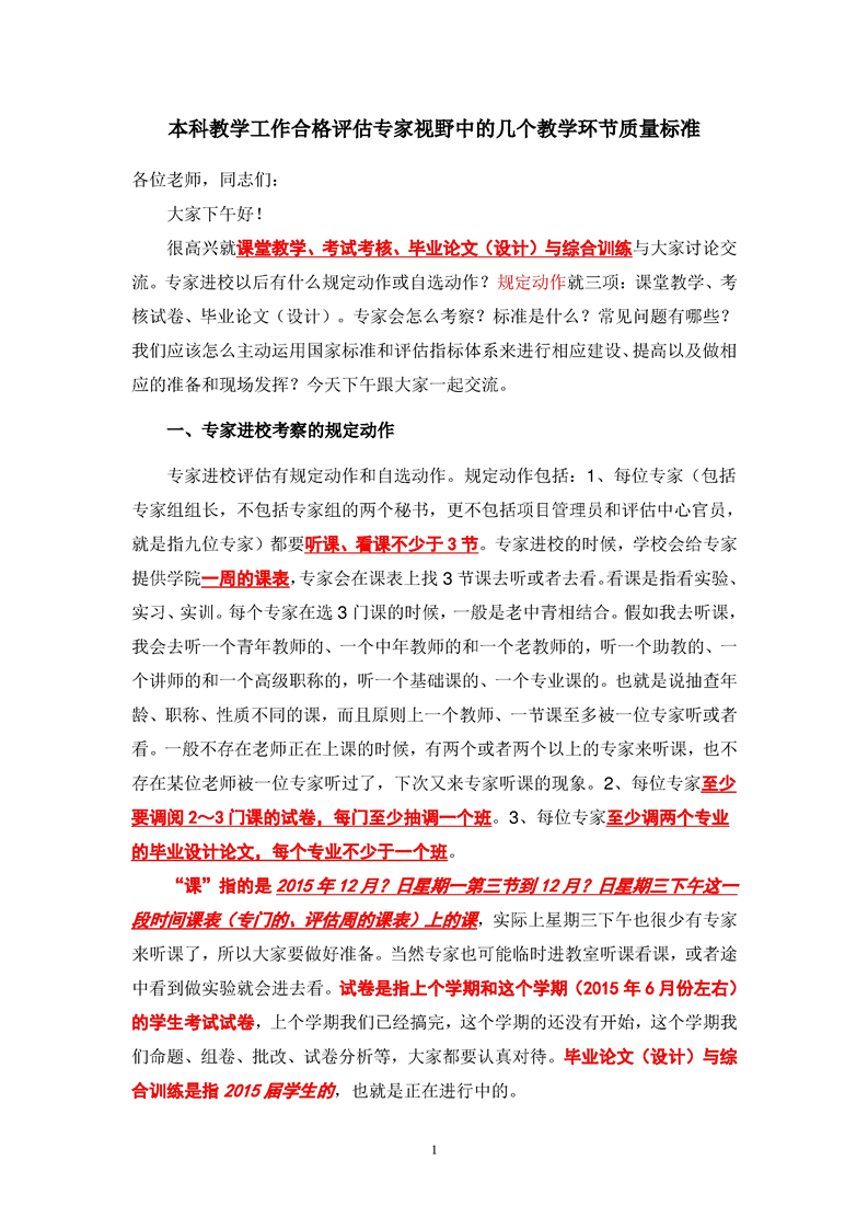 本科教学工作合格评估专家视野中的几个教学环节质量标准