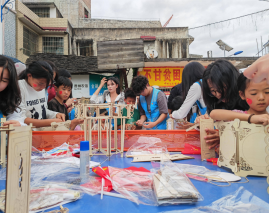 (图为学生党员同志与留守儿童制作手工灯笼)