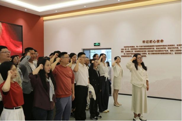 随后,全体党员在二楼展厅学习了袁隆平、南仁东、张桂梅等先进模范的感人事迹。在先进典型的感染下,大家面向鲜红党旗,庄严举起右拳,重温入党誓词。“我志愿加入中国共产党……”铿锵有力的誓言在厅内回荡,既是对初心使命的再次铭记,也是对廉洁自律的郑重承诺。