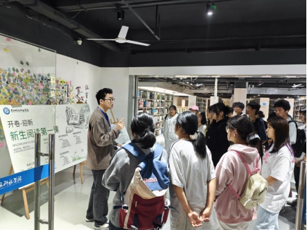 在三楼展开实地讲解时,主要了介绍馆藏布局情况、《中国图书馆分类法》、“第二课堂学分”图书借阅政策及借阅图书的方式和方法。培训中阐明,新生可通过定期借阅专业图书来积累必修的思想道德积分,此次举措不仅将阅读与个人成长评价体系直接挂钩,也在较大程度上激发了新生的借阅热情。