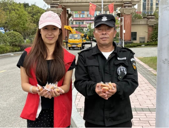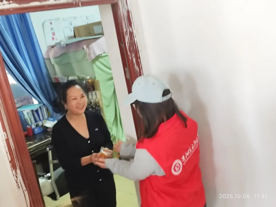随后,志愿者们又来到宿管值班室、保卫处岗亭,向坚守岗位的宿管阿姨、保卫人员送上月饼与节日问候。“谢谢学校还记得我们,这工作再累也值了!”宿管阿姨接过月饼,连连向志愿者道谢。一句句暖心的话语、一份份香甜的月饼,在中秋团圆夜搭建起学校与师生、后勤人员之间的情感桥梁,让留校的日子不再孤单,让坚守的身影更有温度。